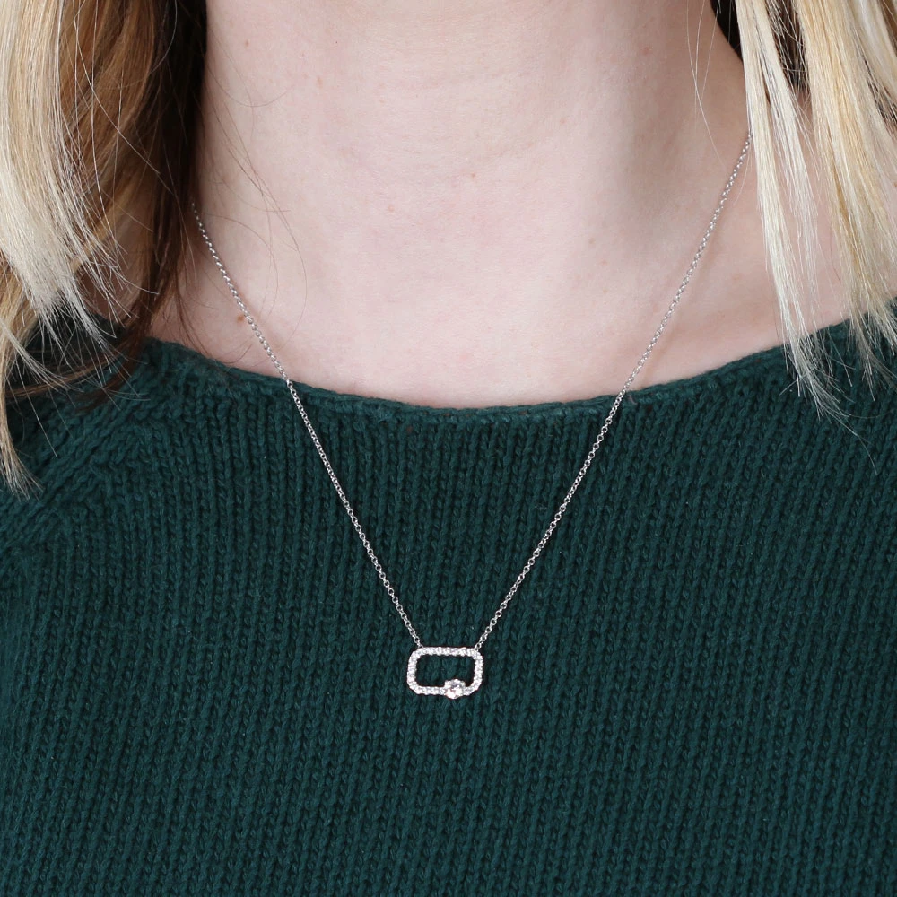 A round Ben Bridge Signature Diamond decorates an open square design that is accented with non-Signature diamonds for a modern diamond pendant design.