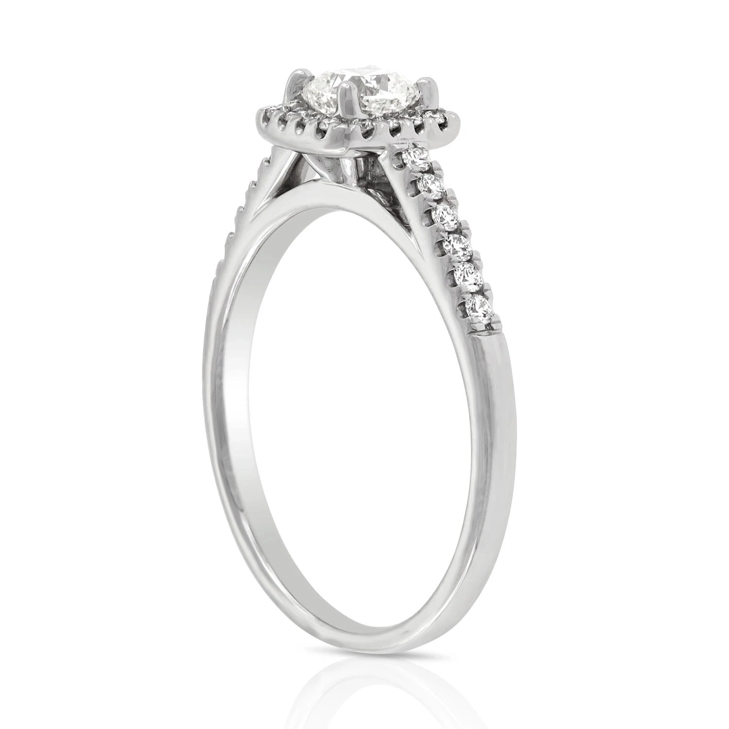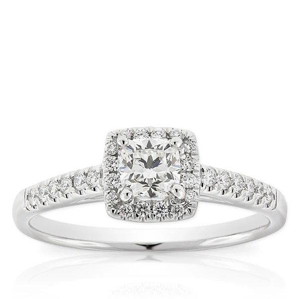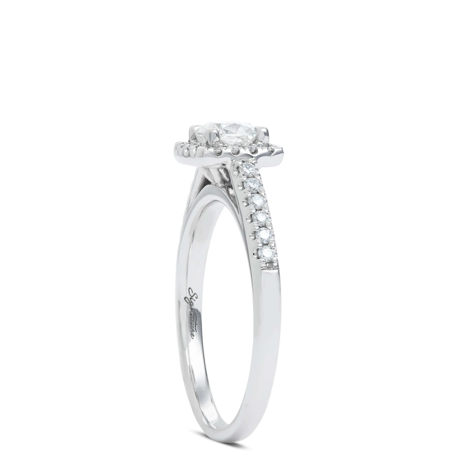 A round Ben Bridge Signature Diamond is held inside a square-shaped halo of non-Signature diamonds to bring you a design that combines classic style with modern shapes.