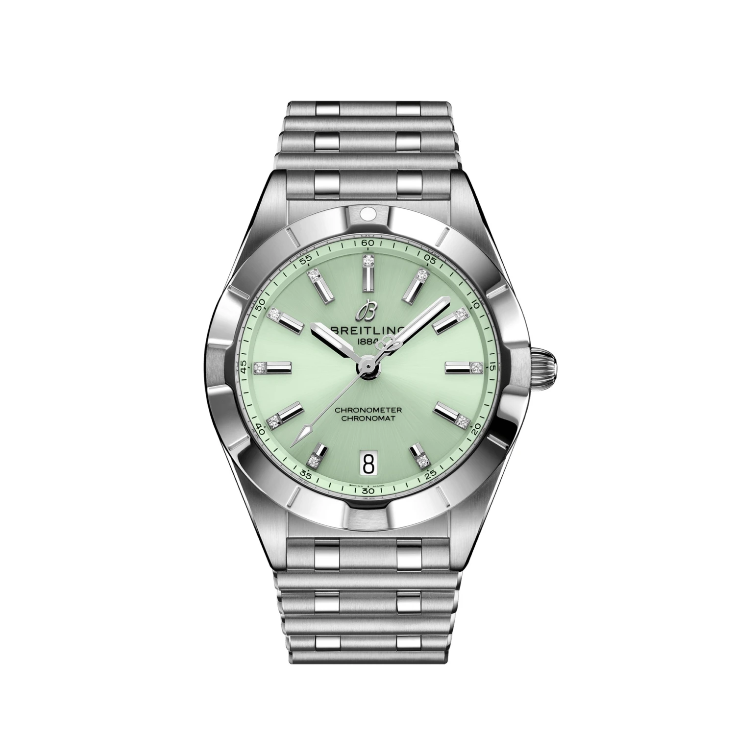 Stylish yet elegant, the modern-retro inspired Chronomat 32 is the versatile sporty and chic watch for any occasion. It is available in an array of metal cases, from cool stainless steel, to goes-with-everything bicolor, or even luxurious 18k red gold. Women craving extra sparkle will also be able to opt for diamond-set bezels, indices, and colorful dials. Featuring Breitling’s iconic and comfortable “Rouleaux” bracelet with a butterfly clasp, the Chronomat 32 is powered by the Breitling Caliber 77, a COSC-certified SuperQuartz™ chronometer.