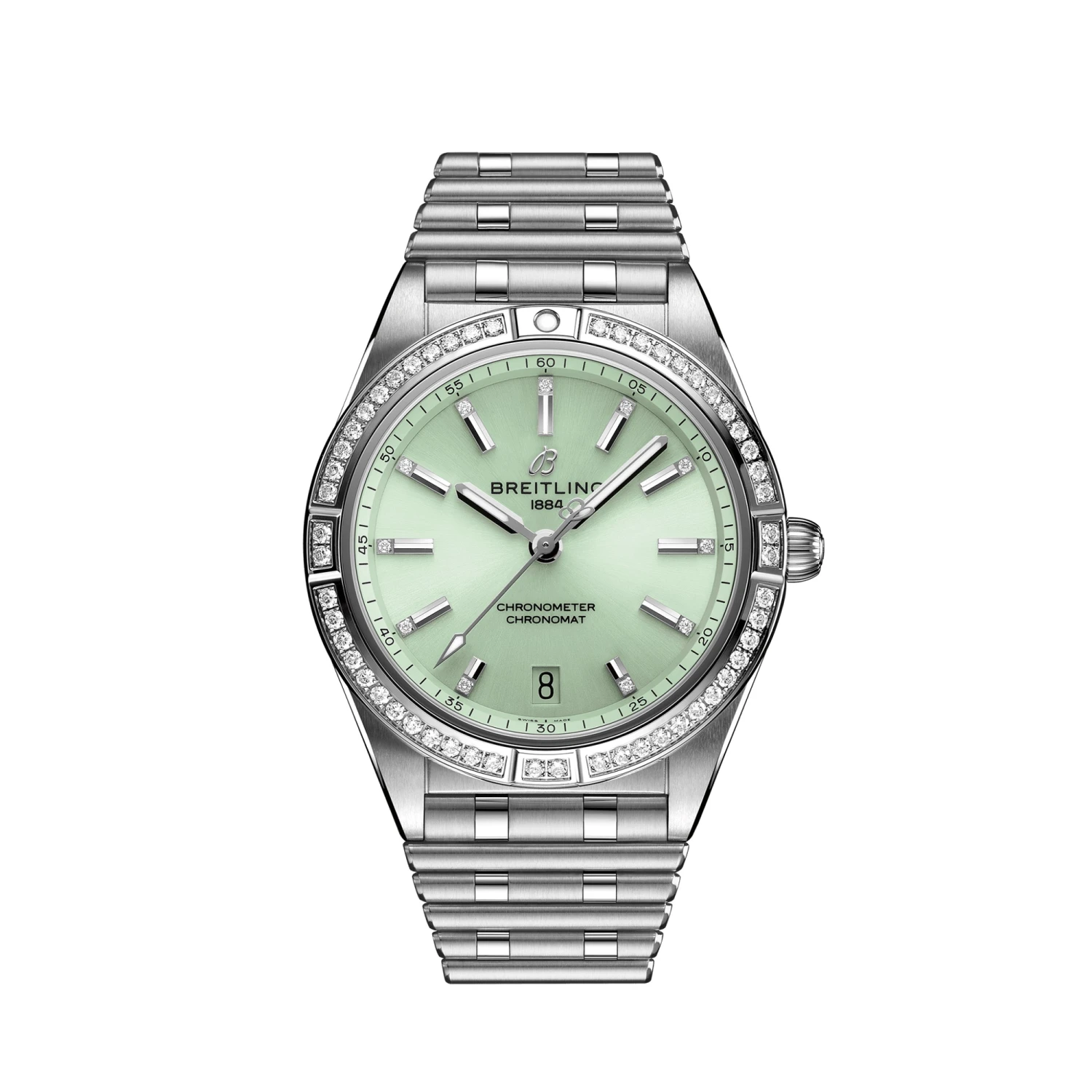Stylish yet elegant, the modern-retro inspired Chronomat Automatic 36 is the versatile sporty and chic watch for any occasion. It is available in an array of metal cases, from cool stainless steel, to goes-with-everything bicolor, or even luxurious 18k red gold. Women craving extra sparkle will also be able to opt for diamond-set bezels, indices, and colorful dials. Featuring Breitling’s iconic and comfortable “Rouleaux” bracelet with a butterfly clasp, the Chronomat Automatic 36 is powered by the Breitling Caliber 10, a COSC-certified chronometer.