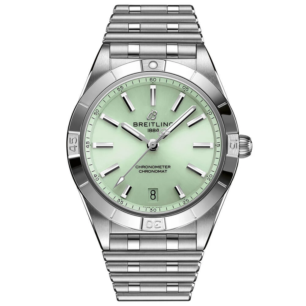 Stylish yet elegant, the modern-retro inspired Chronomat Automatic 36 is the versatile sporty and chic watch for any occasion. The Chronomat features a 36mm stainless steel case and the iconic bezel with the four rider tabs. Featuring a mint green dial, the Chronomat is matched with Breitling’s iconic and comfortable “Rouleaux” bracelet with a buttefly clasp is powered by the Breitling Caliber 10, a COSC-certified chronometer.