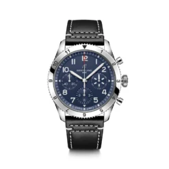 The knurled bezel on the 42mm case provides optimal grip, even in a pilot’s gloved hands. Top-stitched calfskin straps give a nod to the seams found on classic flight gear. Pilots and other travelers will appreciate its legibility, wearability, and understated style. The engine of the Classic AVI is the COSC-certified Breitling Caliber 23 movement, which provides approximately 48-hours of power reserve.