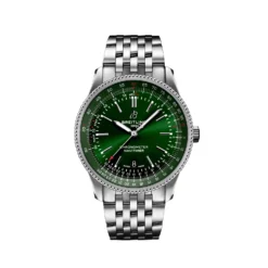 Refined and elegant, the Navitimer Automatic 41 combines the historic appeal of a true icon with the sophistication of a contemporary timepiece. Available in a variety of materials including stainless steel and 18k red gold, the 41 mm case features a beaded bezel and a range of elegant dial colors. Offered either with a matching bracelet or alligator strap that fits both a stainless-steel pin or folding buckle, the Navitimer Automatic 41 is powered by the Breitling Caliber 17, a COSC-certified chronometer.