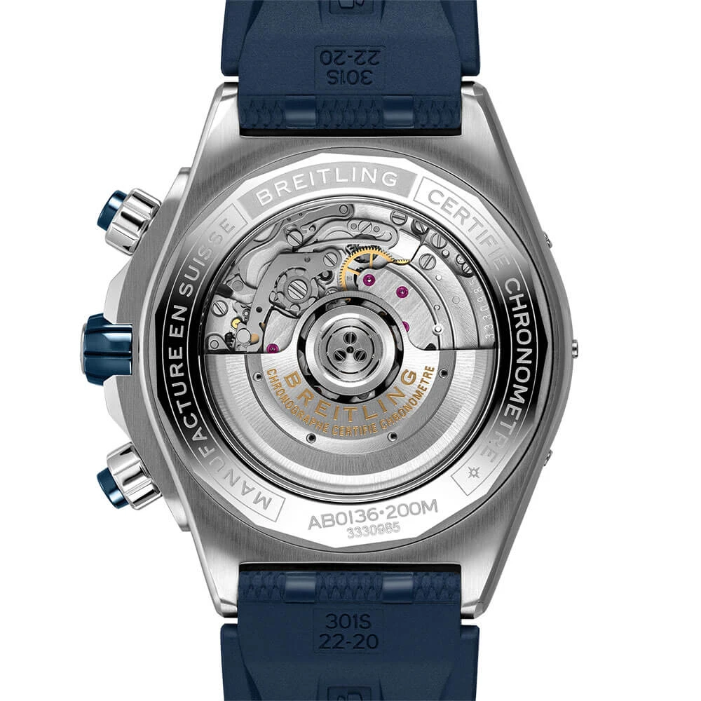 Breitling’s supercharged watch for your every pursuit. The Super Chronomat is inspired by the original 1980s Chronomat that Breitling created for the hotshots of aerobatic squadrons. The boldest of all Chronomat watches, the Super Chronomat features ceramic inserts – on the bezel, on the chronograph pushers and on the crown – as well as a Rouleaux-inspired rubber strap. Still, this all-purpose sports watch won’t get in the way of your sense of style. This Super Chronomat comes with a blue dial, and stainless steel case. It features a rubber Rouleaux-inspired strap, matched with a folding clasp. The Super Chronomat B01 44 is powered by the Breitling Manufacture Calibre 01, a COSC-certified chronometer.