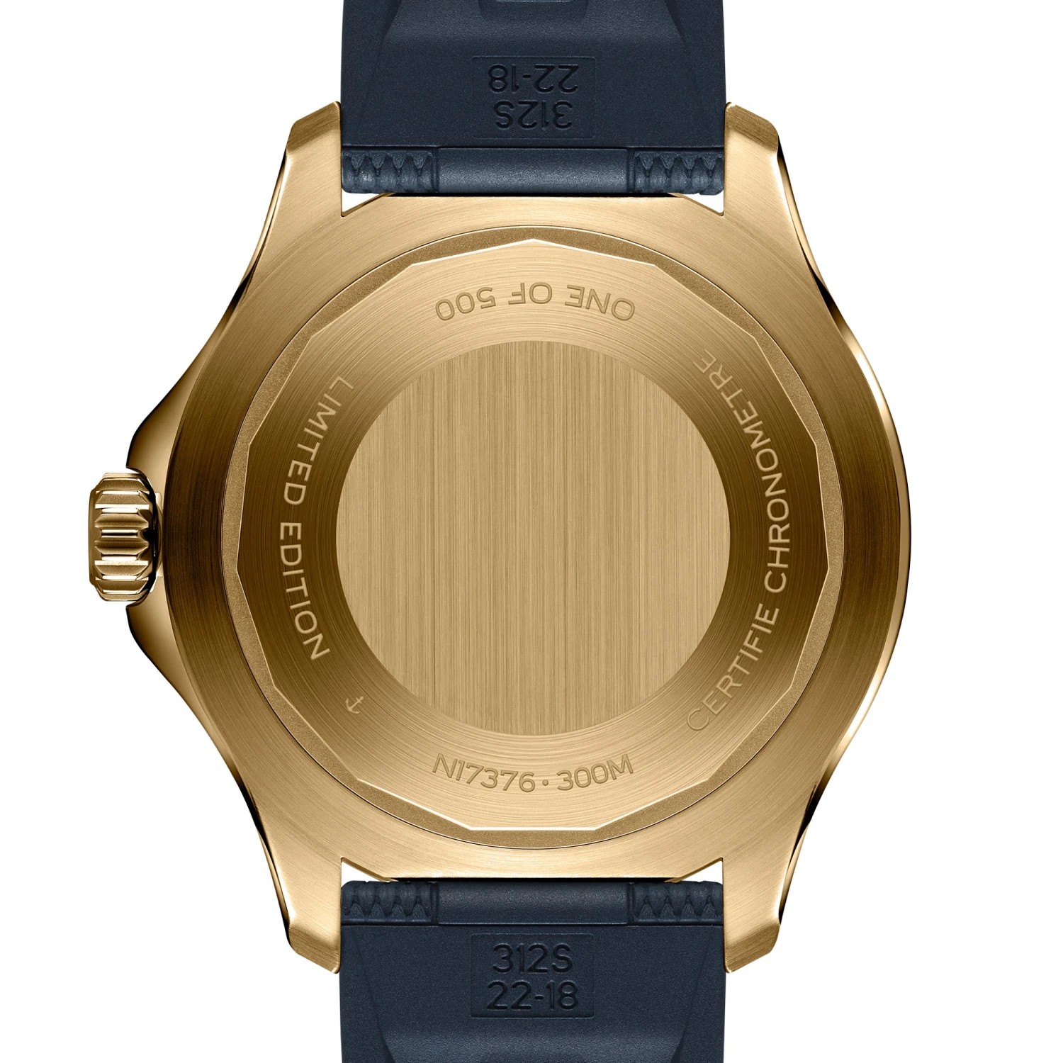 Performance and style for all your water-based pursuits. In the 1960s, the new sport of scuba diving was all the rage. For divers, timing was everything, and Breitling set out to give them the most clear-cut dive watch possible by eliminating any feature that didn’t support their lifesaving needs underwater. This pared-down watch was named the Slow Motion. What remained were clean lines, chunky luminescent indexes, squared-off hands and a high-contrast dial ring, all aimed at maximum legibility. Practical, yes. But what people really fell in love with was the look. The new Superocean retraces the Slow Motion’s celebrated design codes, while adding modern features, like a ceramic-inlayed bezel and brightly colored dials. Broad hands and indexes in luminescent Super-LumiNova® allow for easy readability underwater. The watch is water resistant to 300 m (1000 ft), as well as being shock-, sand- and saltwater-resistant. The bronze version uses a special alloy that has excellent resistance to corrosion, yet will still develop a subtle patina over time that makes the watch even more unique. The two strap options (rubber and metal bracelet) have a folding clasp that allows for micro-adjustments of up to 15 mm for easy wear over rashies and wetsuits. Its scratch-proof ceramic inlayed bezel will never wear or fade. For safety, the bezel is uni-directional on most sizes and bi-directional with a patented lock on the 46 mm. Best of all, this is no longer strictly a dive watch—surf with it, swim with it, hit the beach bar with it, then wear it out to dinner. The Superocean perfectly balances the nostalgia of its heritage with a fresh new look.