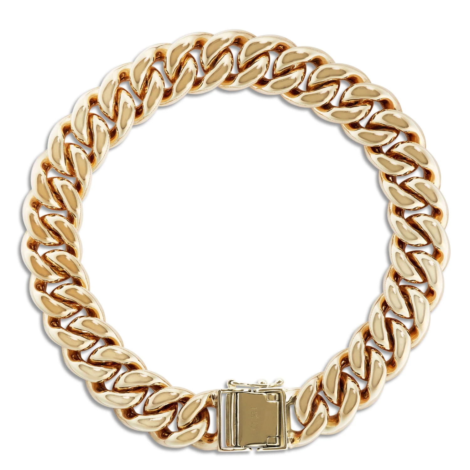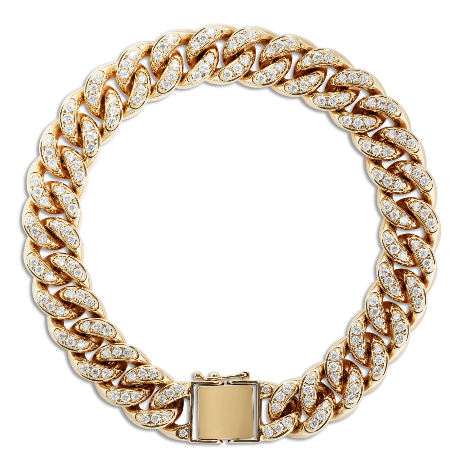 Make a bold and elegant statement with this 7.5-inch Cuban link diamond bracelet. Shimmering round cut diamonds are set in every 14k yellow gold link. The clasp is durable, yet refined to ensure you’ll have a beautiful piece to celebrate for a lifetime.