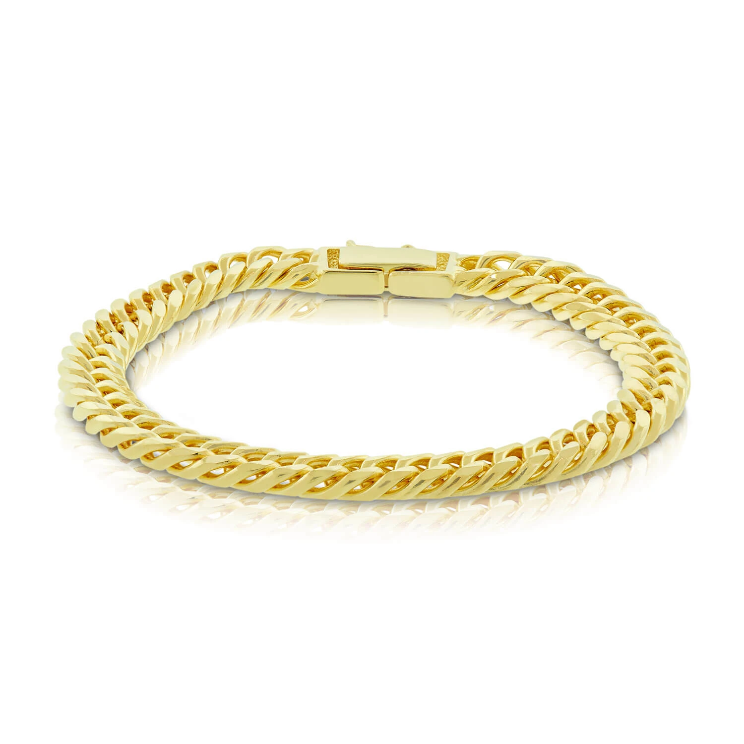 Statement bracelet in a tight curb pattern, with a safety clasp, in 14K yellow gold.