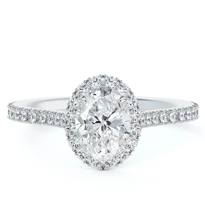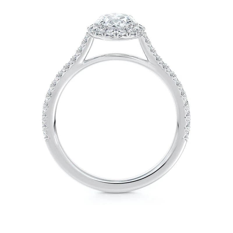 Part of The Center of My Universe® Collection, this ring features a diamond band and oval Forevermark diamond center with a halo of smaller diamonds.