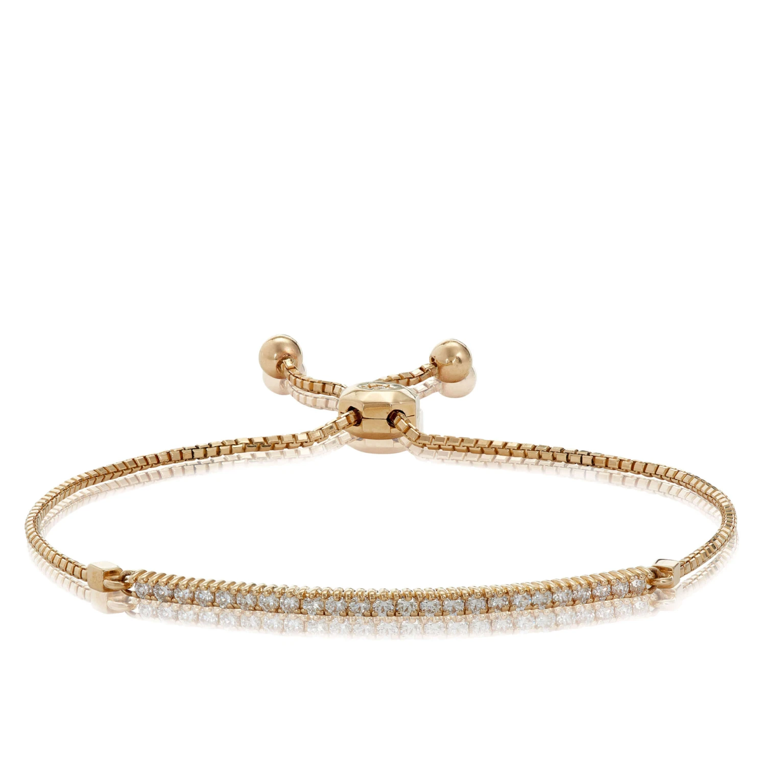 A gently curved bar of round diamonds adds a dazzling effect, while a bolo styling adds versatility. The diamond bar measures nearly 2 inches.