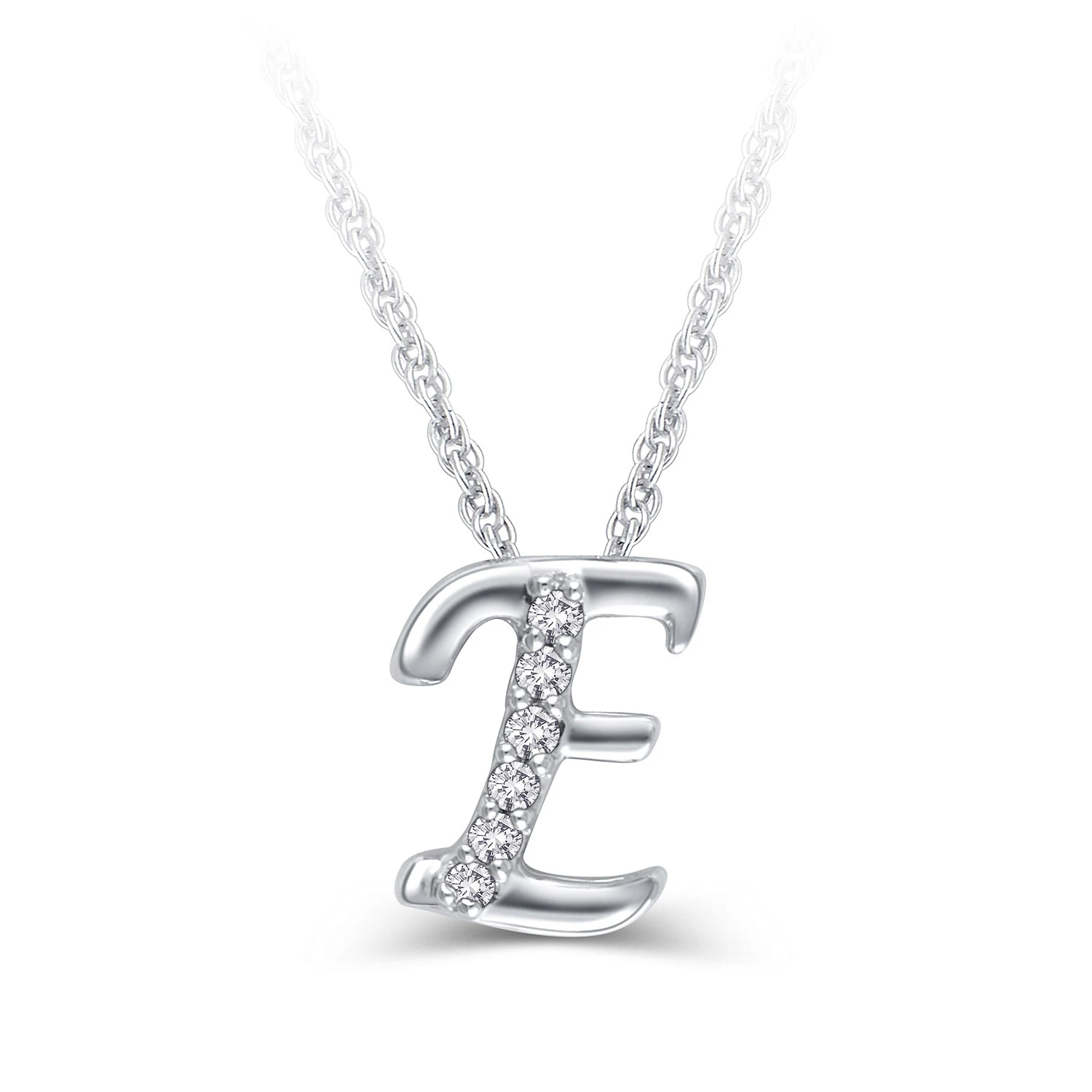 Sparkly stylized diamond initial pendant letter βEβ in white gold script. The letter is more than 1/4 inch high, and a great way to personalize your style. Necklace is 18 inches with a 2 inch shortening loop.