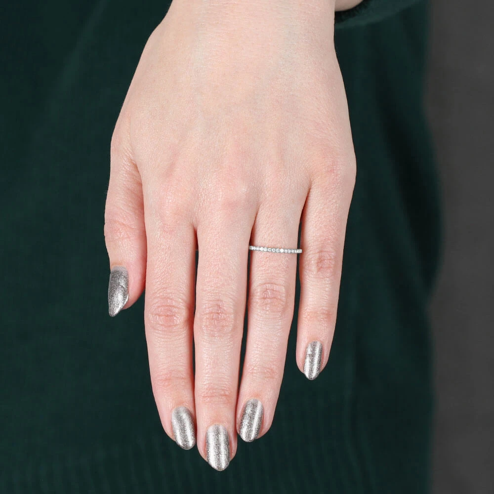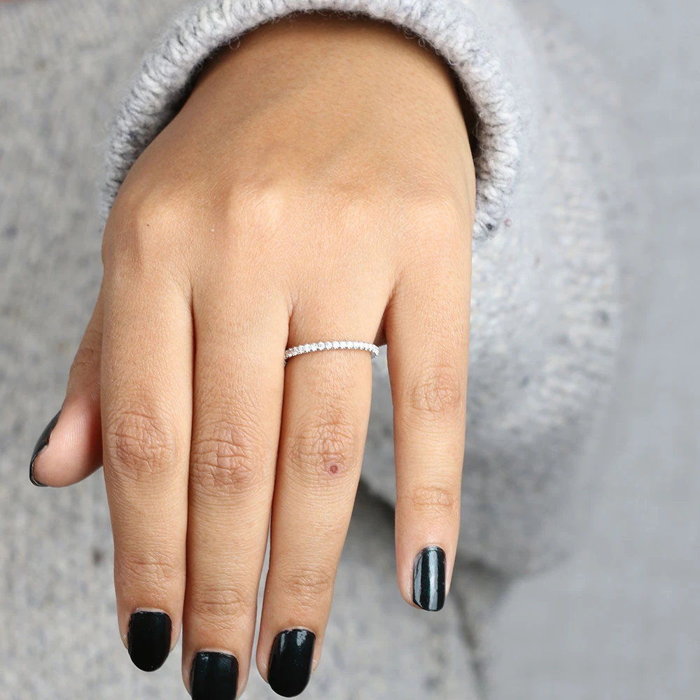 Stack with other rings or wear this classic diamond band alone. Eternity design with diamonds completely encircling the ring. Diamond count and carat total weight varies by ring size.