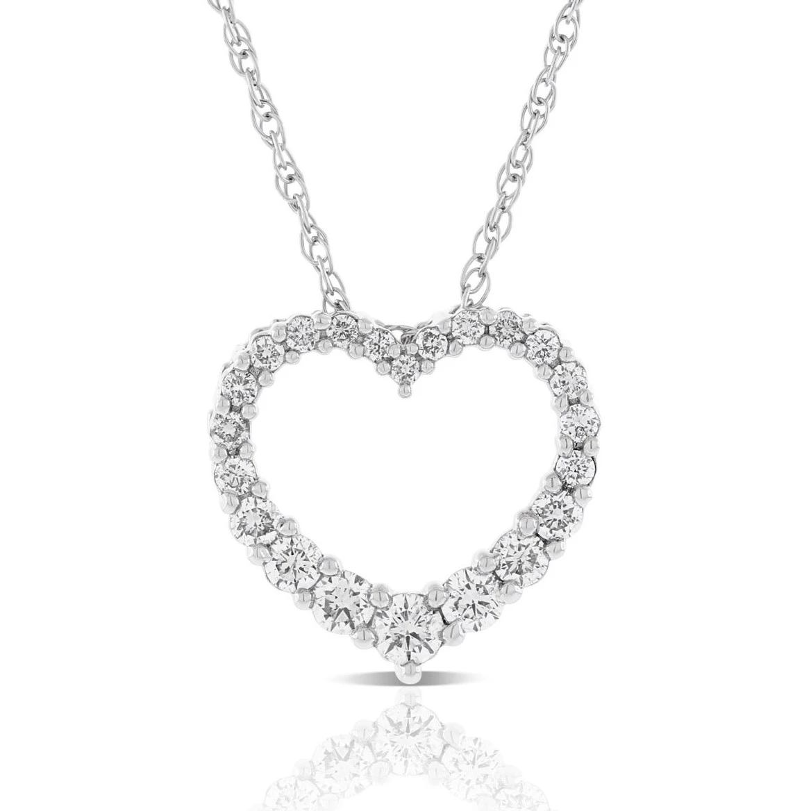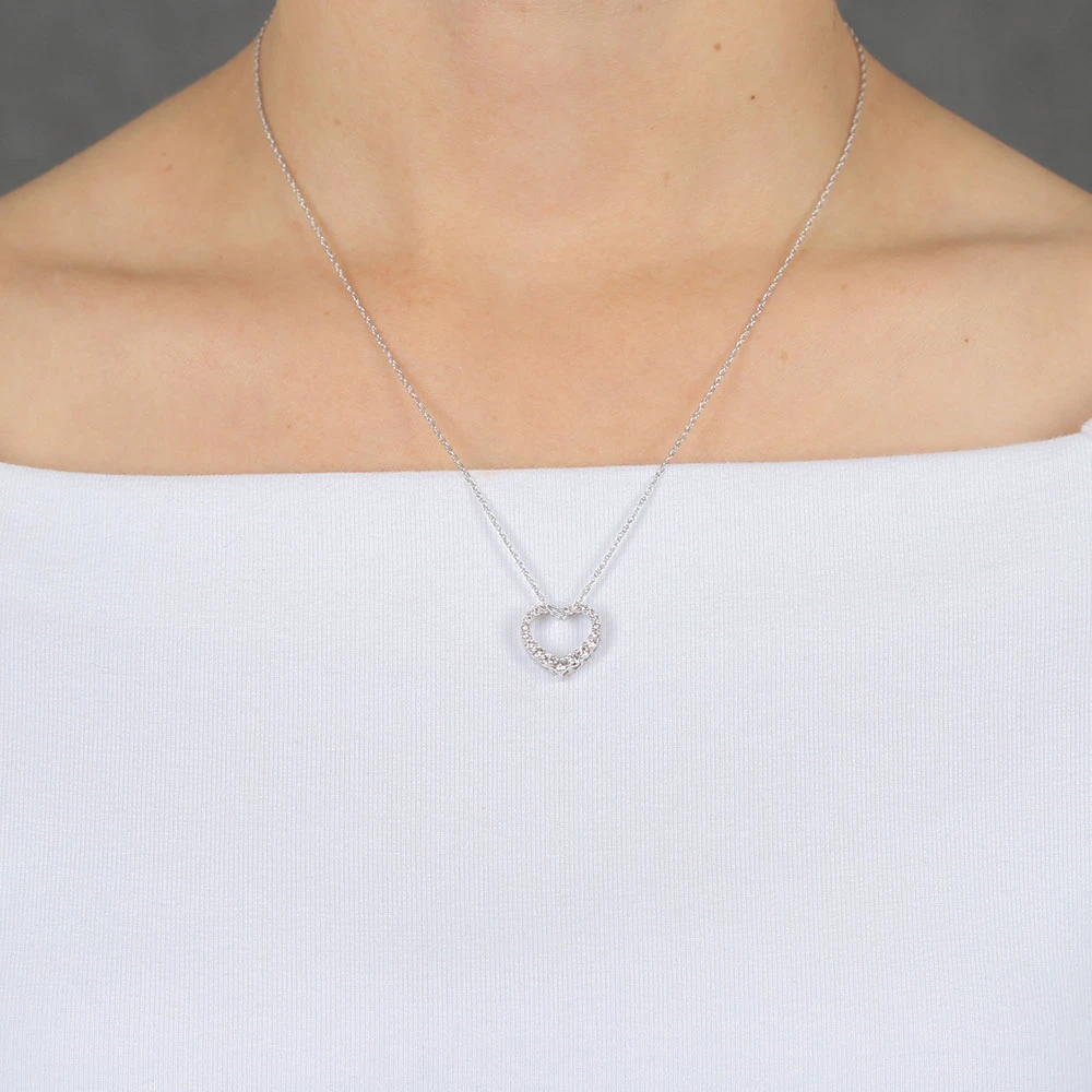 Diamonds, graduated in size, form the shape of a heart, making a lovely piece of jewelry perfect for every day wear.