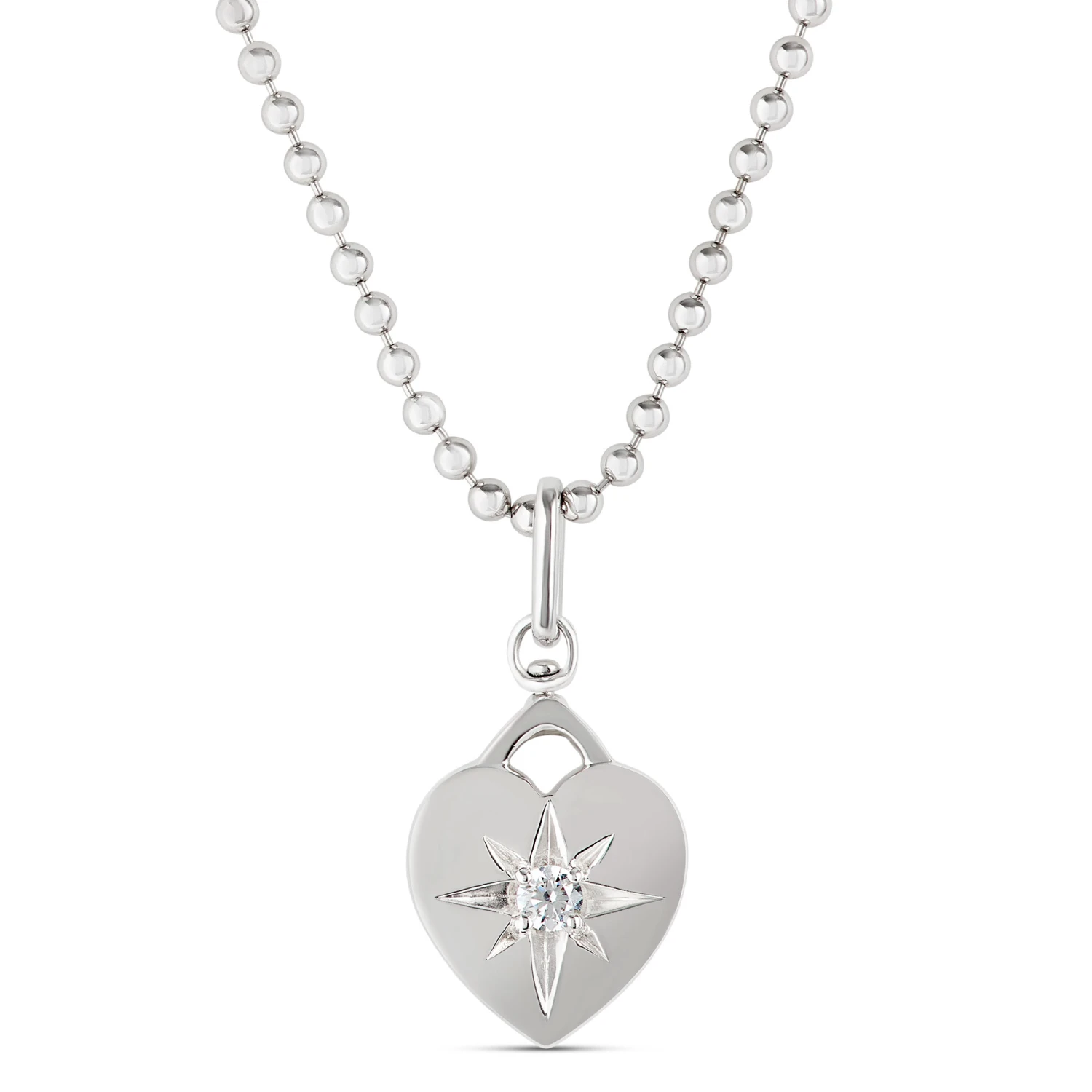 Our Ikuma Canadian Diamond collection brings you natural, attainable, responsibly sourced diamond jewelry that’s perfect for everyday wearability. The center stone of this gorgeous heart-shaped pendant necklace is a beautiful, traceable round cut diamond set in shimmering sterling silver on a beaded silver chain. It’s a great gift for yourself or someone special