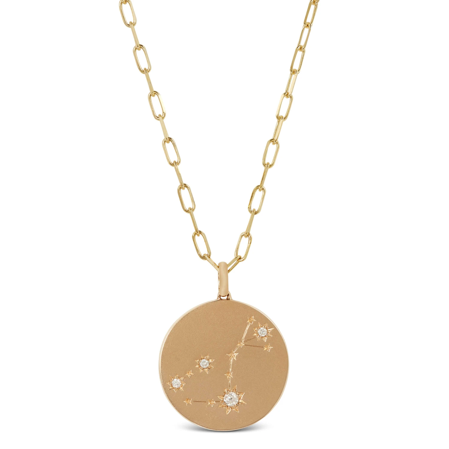 Our Ikuma Zodiac Collection showcases the celestial beauty of each sign’s constellation. This pendant symbolizes the powerful simplicity of the Scorpio constellation, highlighting the individual stars with a characteristic sparkle of diamonds and gold.