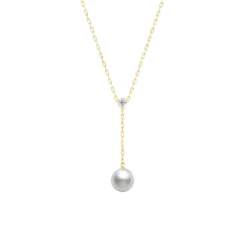 A lustrous pearl dangles beneath a sparkling diamond in this ‘Y’ drop necklace design. Can be worn at 16 or 18 inch length.