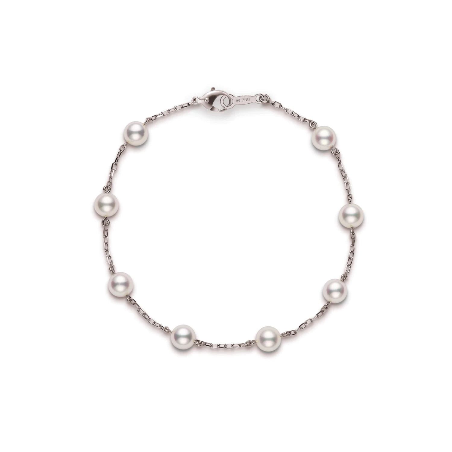 Mikimoto’s Akoya Cultured Pearl Station Bracelet is a classic that’s versatile enough to easily transition from day to evening wear. Crafted from 18k white gold and featuring eight beautiful A+ 6-5.5mm Akoya pearls, it’s perfect for any occasion.