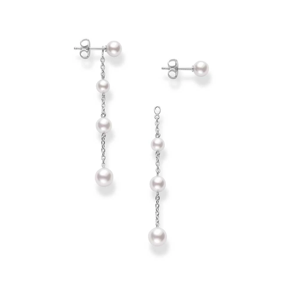 A graduated line of lustrous cultured Akoya pearls dangles beneath a 5mm stud in this elegant, yet simple design.