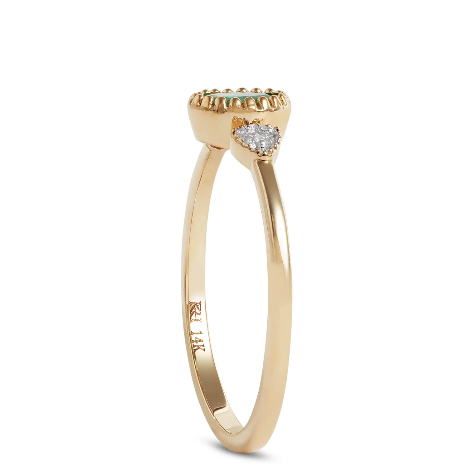 This 14k yellow gold oval emerald and diamond ring is a petite and delicate piece of jewelry that would make a wonderful gift. Its smaller size and understated design make it suitable for those who prefer dainty and subtle accessories. Its simplicity and elegance allow it to be easily worn and paired with other jewelry pieces, making it a versatile addition to any collection.