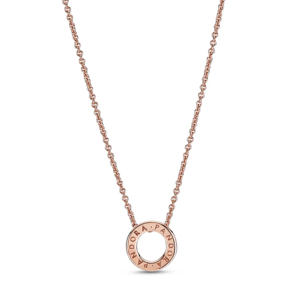 Celebrate the Pandora Signature range with the Pandora Logo Pavé Circle Collier Necklace. This 14K rose gold-plated reversible piece with an open center is highly detailed and hand-finished. On one side of the circle, there are clear cubic zirconia. The polished reverse side features an engraving of the Pandora logo. With cut-out hearts on the sides of the circle, show your passion for classic design by wearing this adjustable Pandora logo necklace.
