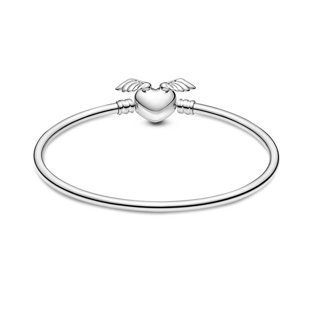 Present your loved one with the Pandora Moments Winged Heart Bangle. Hand-finished in sterling silver, this design features a heart-shaped clasp. The engraving on the front reads “Always by your side” with a small indented heart beneath it. Two moving angel wings feature on the back of the clasp. Gift this piece to your family member alongside a pair of heart-shaped sterling silver earrings to make them feel extra special.