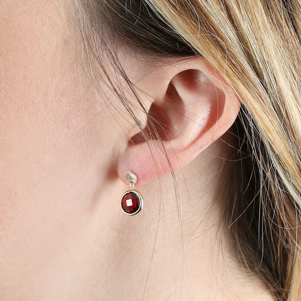 A round garnet is given a modified checker cut for facets that gleam from every angle, making these earrings an easy way to add a pop of color to your ensemble. Earring is approximately 9 x 16mm. Pair with matching necklace 11839032, while available.