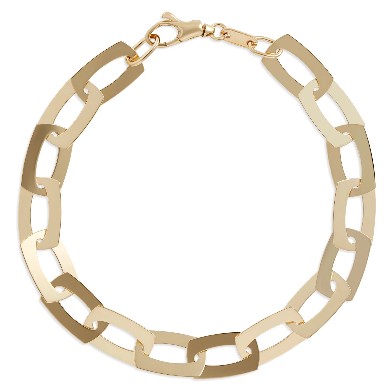 This stunning Italian made oval flat link bracelet is crafted with beautiful 14k yellow gold. The detail puts a modern twist on a classic style with the unique shape and polish of each flat link. Like every piece from our Toscano Collection, this 7.5-inch bracelet showcases the best of Italian design and artistry for style made to wear and love every day.
