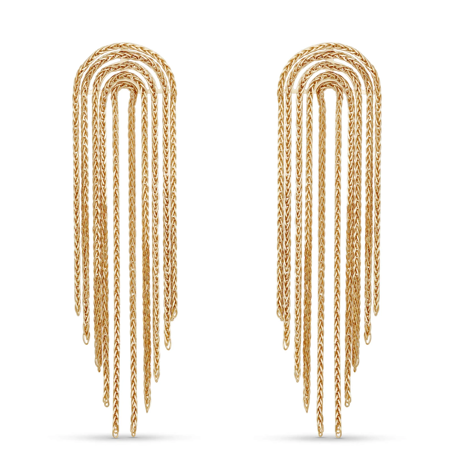 There’s nothing like a great pair of dangle earrings when you’re looking for a dramatic and elegant finishing touch. Our Toscano chain arch dangle earrings fit that bill perfectly with flowing elegance and the bold glow of 14k yellow gold. Like every piece from our Toscano Collection, these earrings reflect the detailed craftsmanship and artistry of Italian goldsmithing with exceptional quality and unique style.