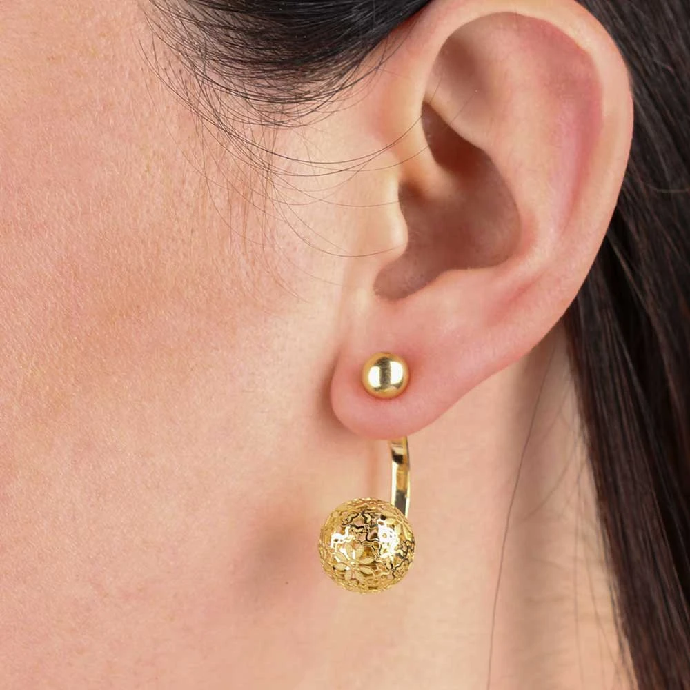 Wear as classic high polished sphere stud earrings or add extra style with the dropped floral motif ball. Versatile design allows wear with or without the cut out floral portion that slides onto the post.
